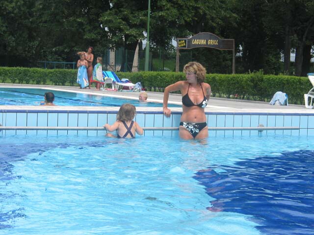 Bad-dag i Budapest. Mamma och Fia testar det 30-gradiga vattnet.